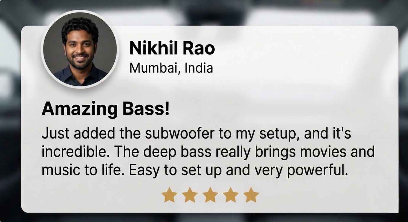 Wide frequency response of 45Hz–500Hz produces rich low-end bass with clear sound reproduction across different audio ranges.